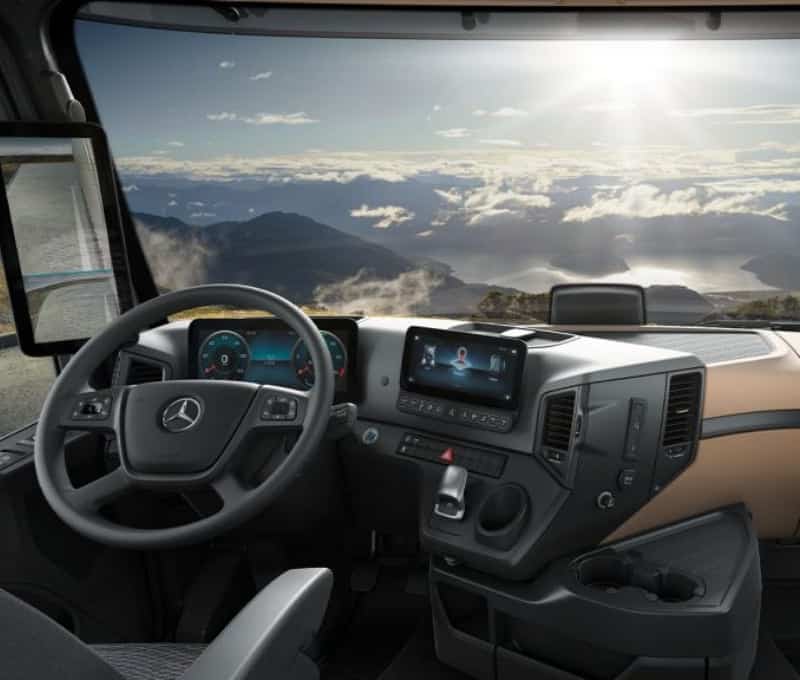 Både rörelsefrihet och stämning är viktiga egenskaper i Actros som minimerar uttröttning och ökar förarens produktivitet.